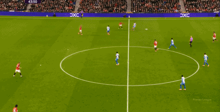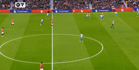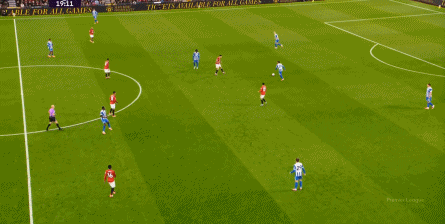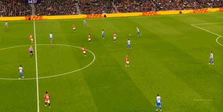 所以在开局阶段,在曼联还没有进球之前,布莱顿就已经可以通过曼联在某个局部的人盯人失败,从而获得非常好的机会: